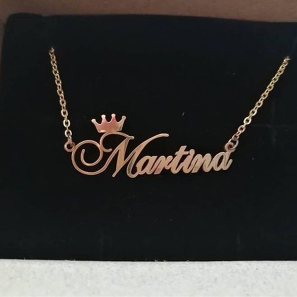 Name Necklace Name Plate Personalized Crown Nikfine